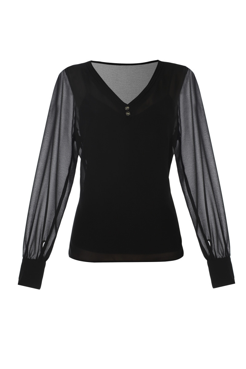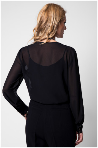Elegantni set transparentnih rukava u crnoj boji. V izrez oplemenjen je efektnim detaljem. Viskozna postava čini ga veoma udobnim za nošenje.