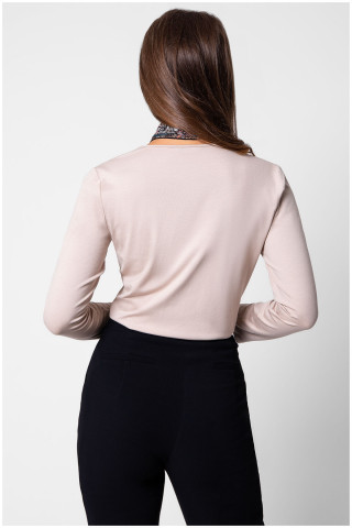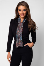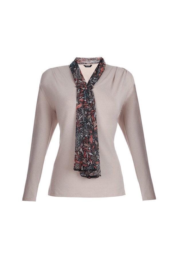 Viskozna bluza klasičnog kroja vrlo je prijatna na koži i odlično se kombinuje sa modelima iz iste kolekcije. Apstraktnu ešarpu, koja imitira kravatu, možete skinuti i dobiti drugačiji izgled modela.