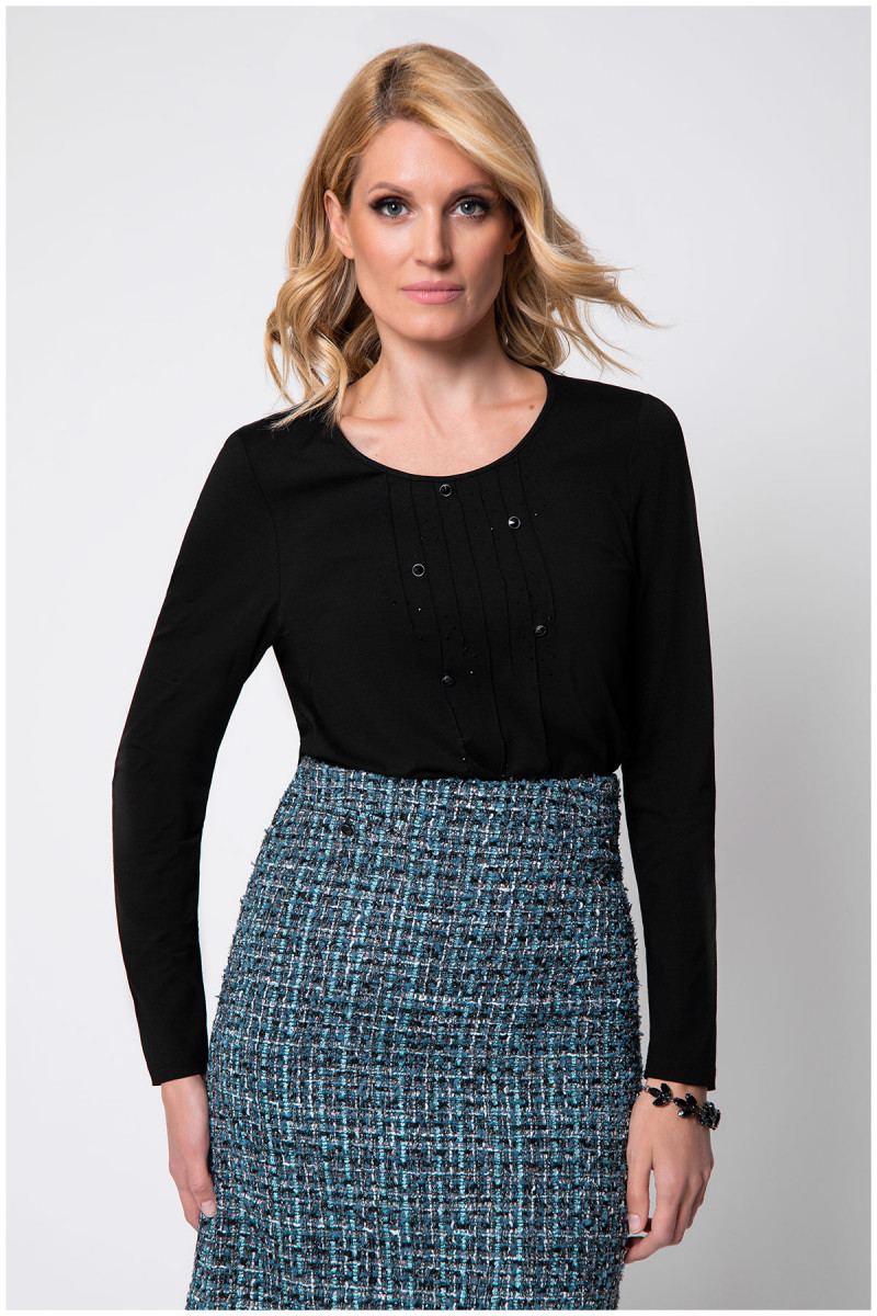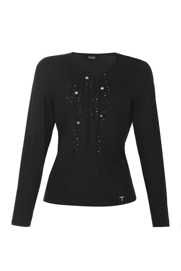 Viskozna crna bluza sa zlatnim cirkonima odlična je za kombinovanje sa mnogim Luna sukn...
