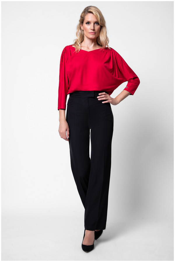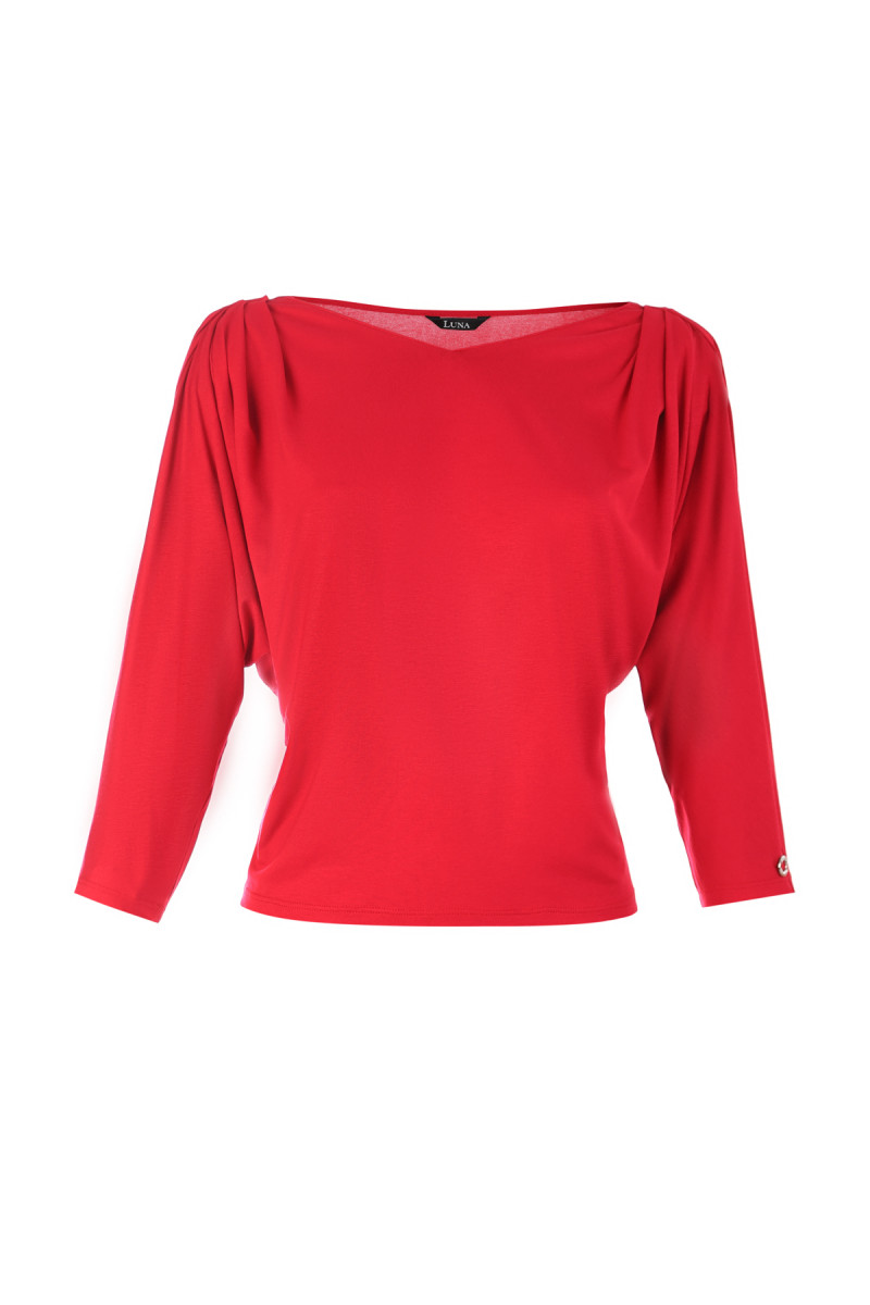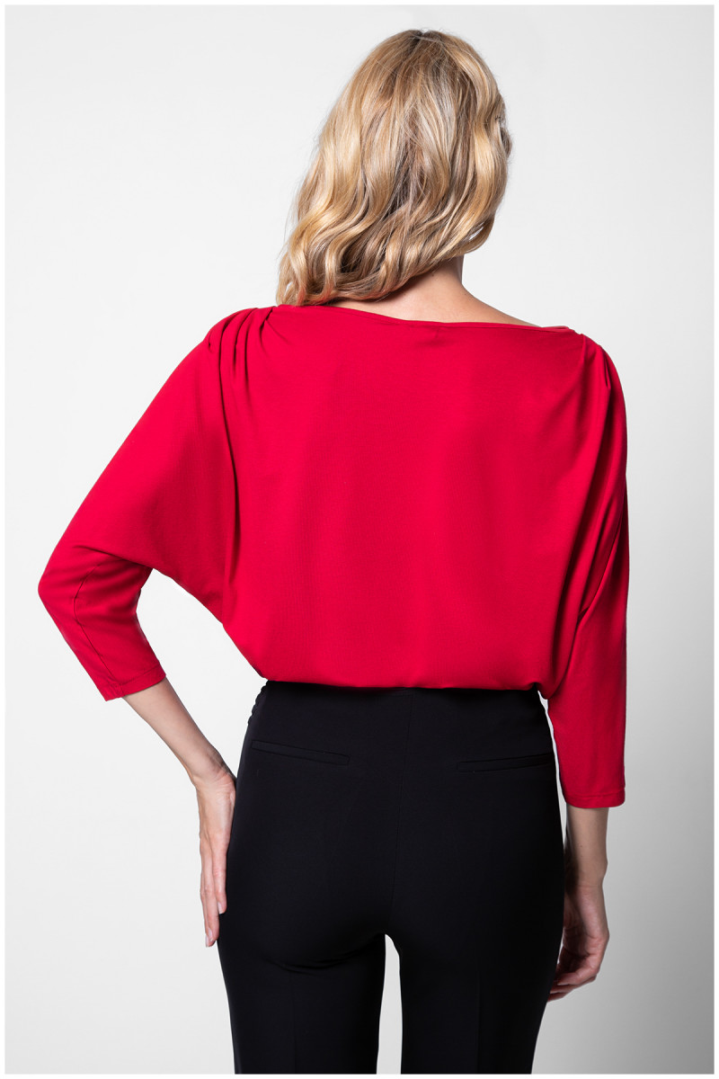 Ženstvena majica 3/4 rukava sa diskretnim naborima u predelu ramena. Napravljena je od viskozne tkanine sa visokim procentom elastina što je čini vrlo prijatnom za nošenje.