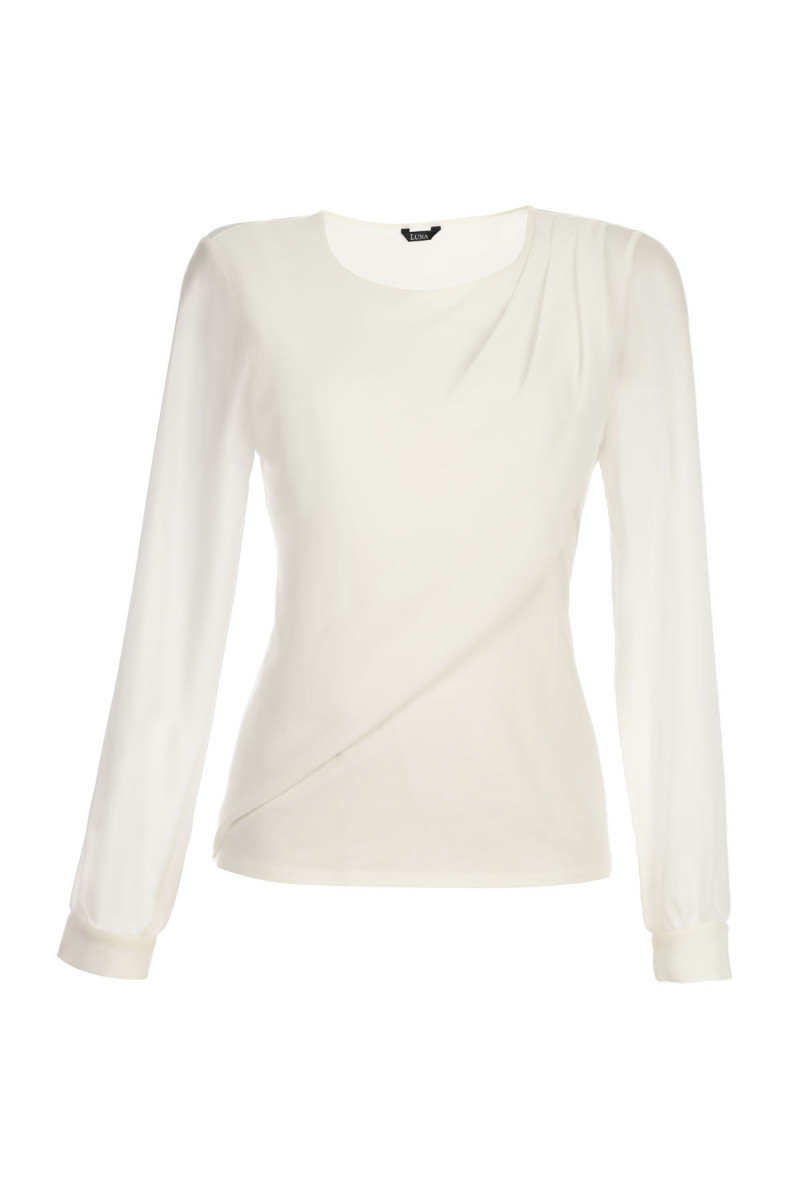 Elegantna ženstvena bluza sa blago prozirnim rukavima pogodna za svaku priliku.