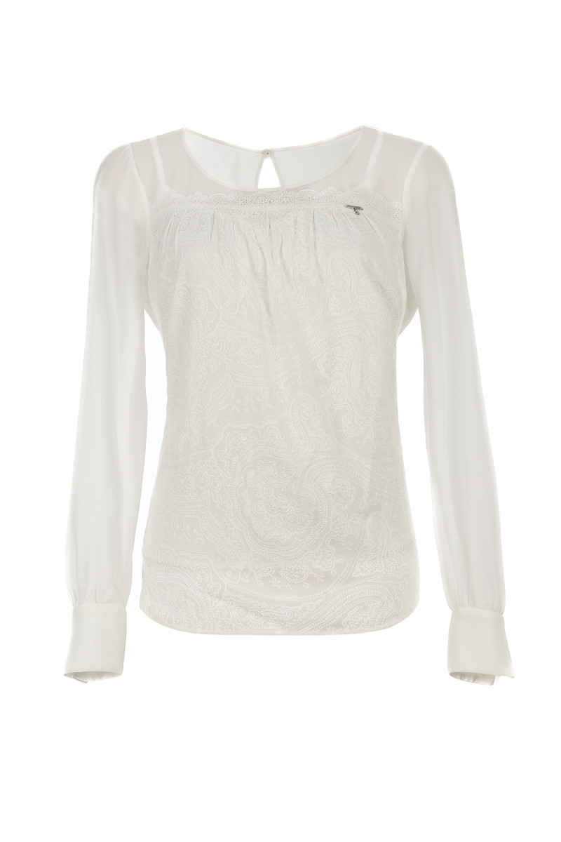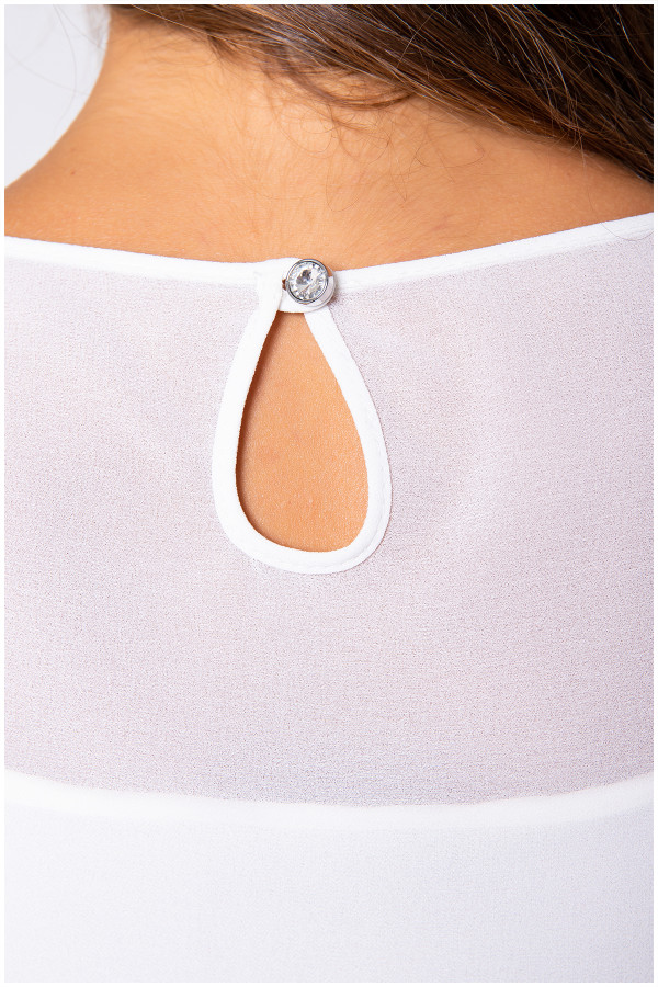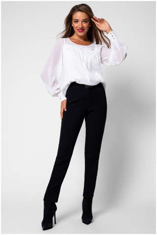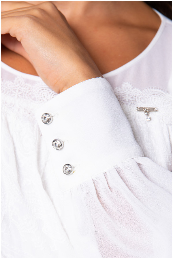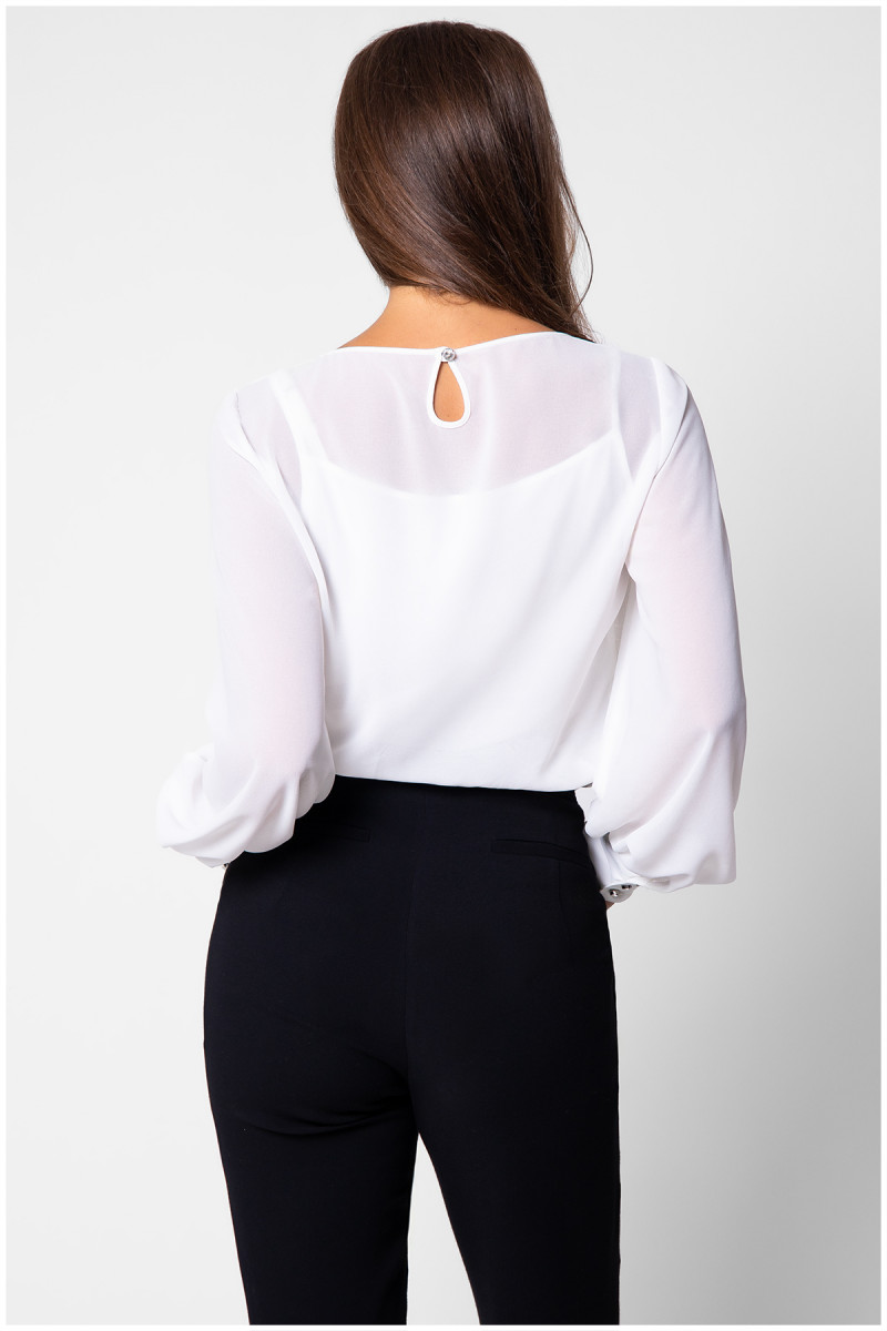 Elegantna bluza sa blago prozirnim rukavima. Nabori i detalji u predelu grudi čine je veoma efektnom. Model ima suptilni otvor na leđima. Iskombinujte je sa pantalonama iz iste linije i dobićeta savršen outfit za različite prilike.