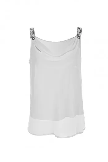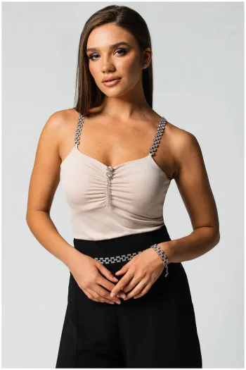 Bež top sa elegantnim bretelama od cirkona Vašem outfitu dodaje upečatljiv i sofisticir...