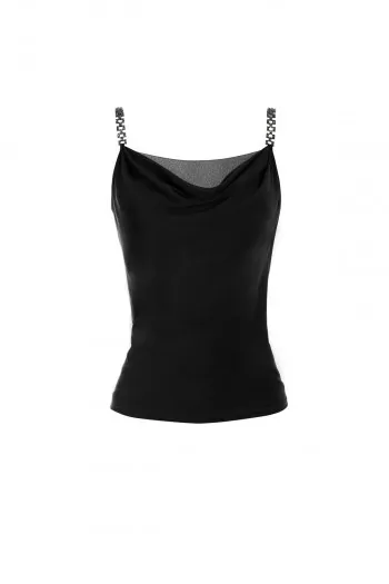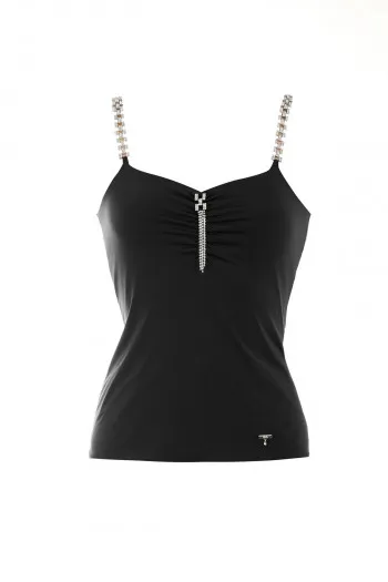 Crni top sa elegantnim bretelama od cirkona Vašem outfitu dodaje upečatljiv i sofistici...