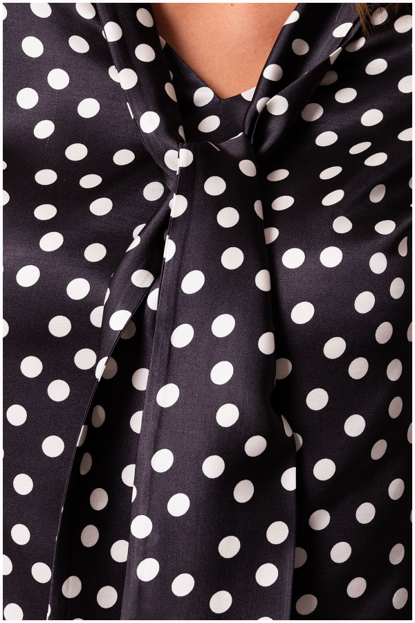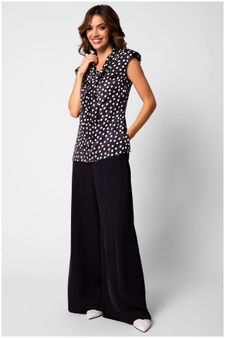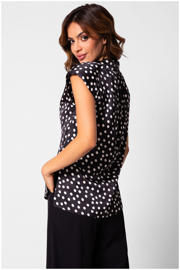 Viskozna bluza na tufne bez rukava. Model poseduje kragnu koja se vezuje oko vrata što ovaj model čini sofisticiranim i autentičnim. Vrlo je prijatna na koži i odlično se kombinuje sa modelima iz iste kolekcije.