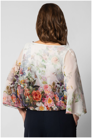 Elegantna tunika sa lepršavim rukavima cvetnog dezena, odlično se kombinuje sa širim pantalonama od istog materijala.