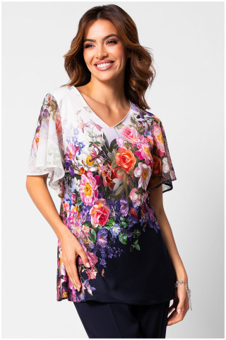 Ženstvena tunika na kratke lepršave rukave cvetnog dezena.