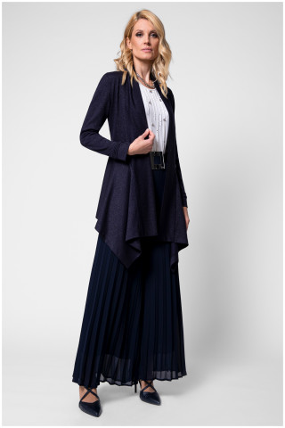 Elegantna teget bluza sa belim obrubom i suptilnim sjajem pruža lagan, prijatan osećaj ...