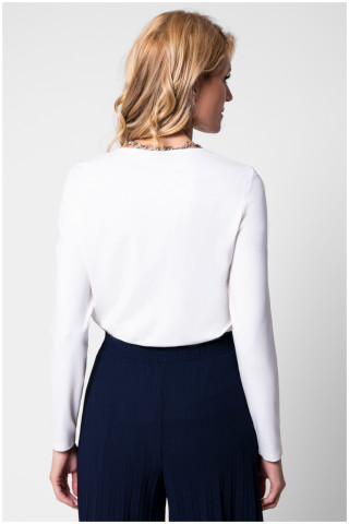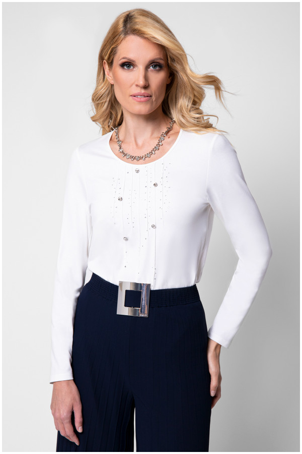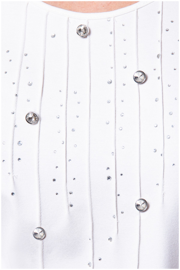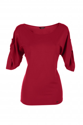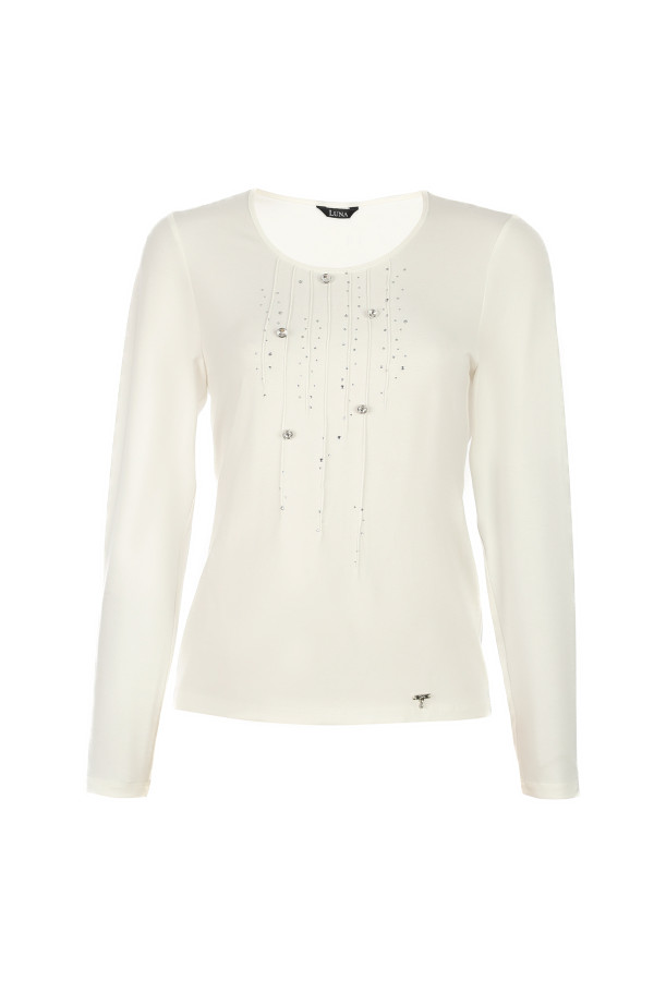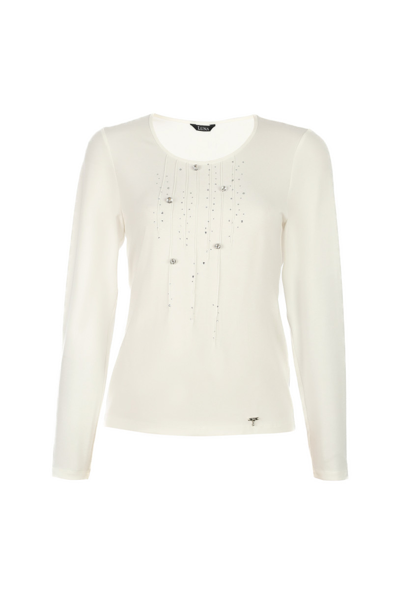 Jednobojna majica klasičnog je kroja. Prednji deo je obogaćen cirkonima i efektnim detaljima. Viskoza u kombinaciji sa elastinom čini je vrlo prijatnom na koži i komfornom za nošenje. Odlično se kombinuje sa svim modelima iz prateće Luna kolekcije.