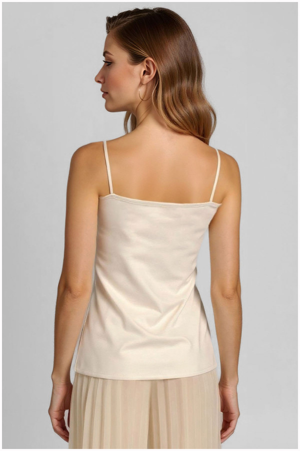 Bež top sa elegantnim bretelama od cirkona Vašem outfitu dodaje upečatljiv i sofisticir...