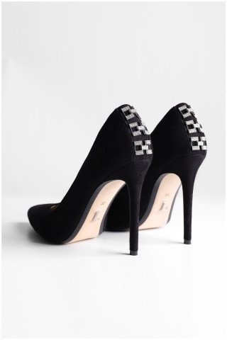 Elegantne crne salonke od prirodne kože sa dekorativnom kopčom i potpeticom visine 5 cm...