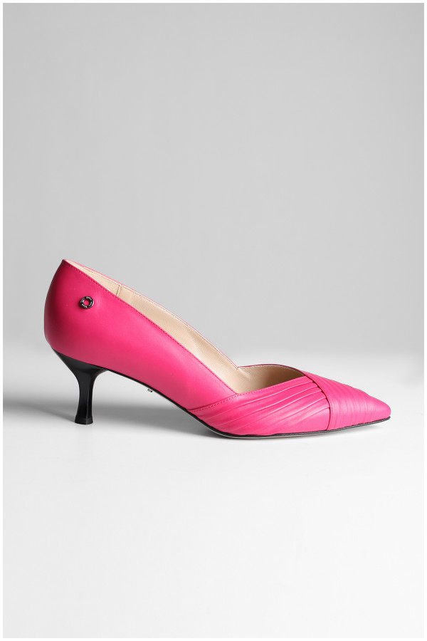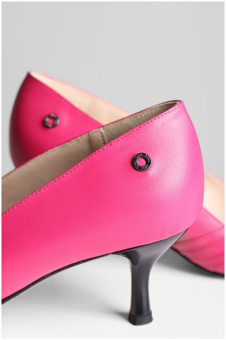 Elegantne crne salonke od prirodne kože sa dekorativnom kopčom i potpeticom visine 5 cm...