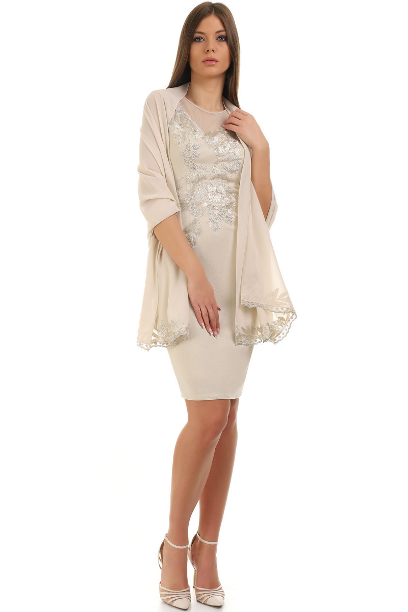 Elegantna bež ešarpa sa jedinstvenim detaljima u vidu cvetne aplikacije. Odlično se kombinuje sa LUNA haljinama i suknjama. Savršen je modni dodatak za svečane prilike.
