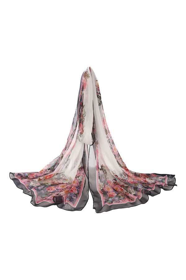 Ešarpa od svile cvetnog dezena, upotpuniće Vaš outfit i dati mu upečatljivost.