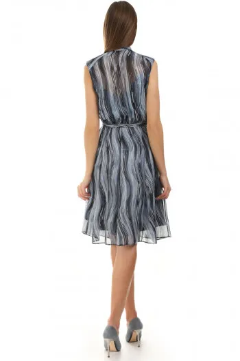 Teget-bela kratka uska haljina sa kontrastnim ivicama, skrivenim rajsferšlusom na leđim...