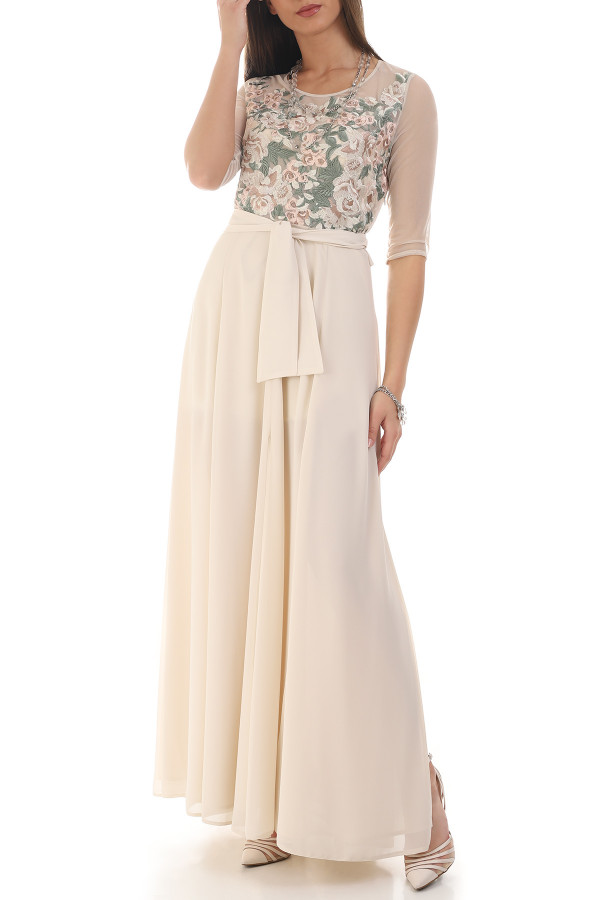 Elegantna duga haljina savršena za svečane i glamurozne prilike. Izrađena je od veoma mekane i blago rastegljive tkanine koja se od struka širi i izgled čini veoma ženstvenim i prefinjenim, a rajsferšlus na bočnoj strani, olakšaće Vam oblačenje. Donji deo je izrađen u dva sloja, tako da pruža sigurnost prilikom nošenja. Pojas koji se pozadi vezuje savršeno ističe struk i omogućava da se model odlično prilagodi svakom struku. Idealna je u kombinaciji sa elegantnom ešarpom.
