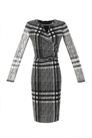 Uska karirana haljina dugih rukava sa savšreno osmišljenim detaljima.