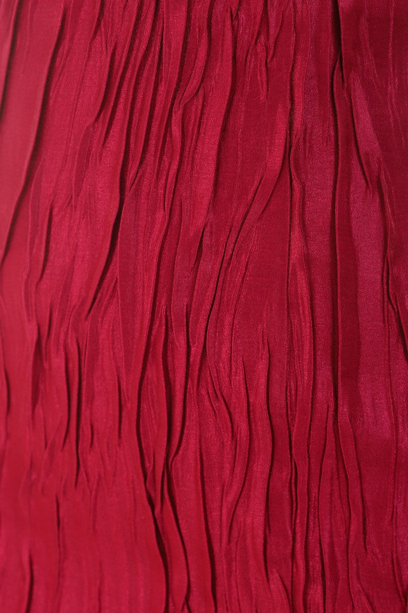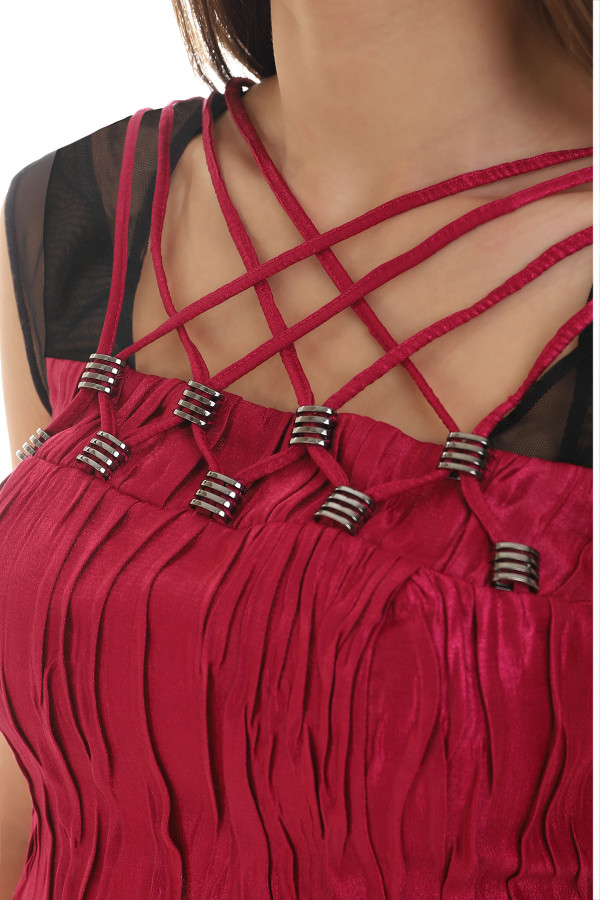 Ciklama haljina od materijala reljefne teksture sa ručno izrađenim detaljima u zoni dekoltea.