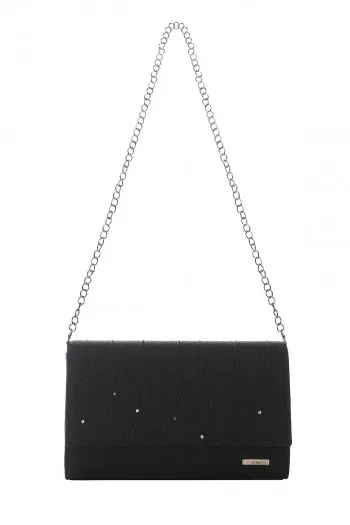 Elegantna crna haljina sa suptilnim sjajem i ženstvenom siluetom za svečane prilike.