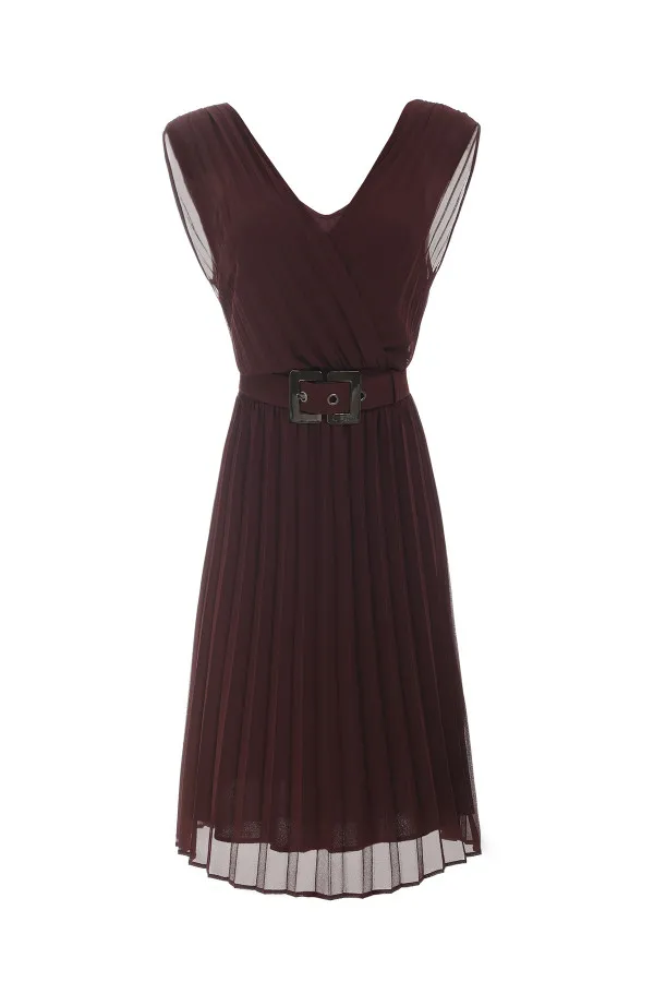 Elegantna bordo haljina sa suptilnim sjajem i ženstvenom siluetom za svečane prilike.