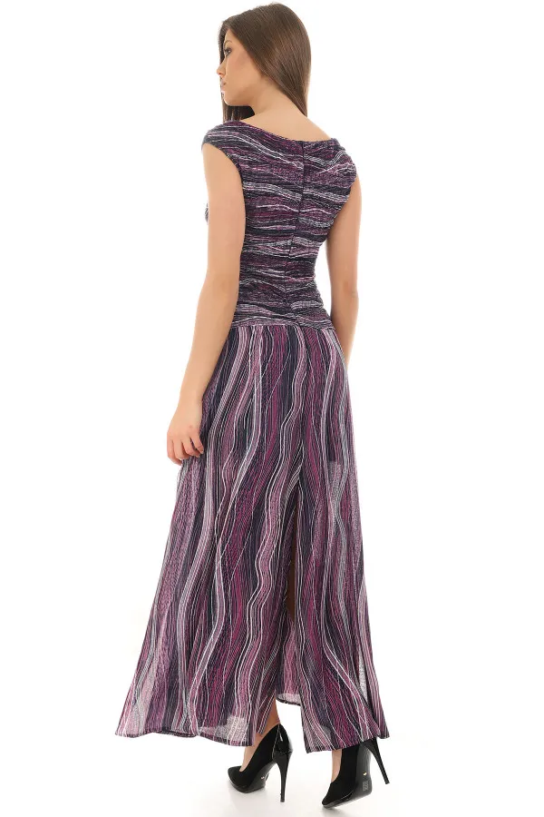 Raskošna haljina sa šllicevima. Zahvaljujući posebnom dizajnu ovaj model odiše seksepilom i ženstvenošću. Odlično se kombinuje sa pismo torbom i ešarpom iz iste linije kreirajući savršen outfit za posebne prilike.