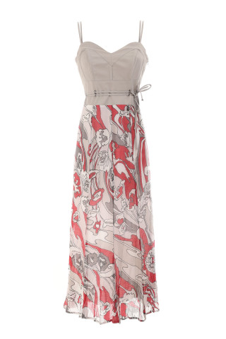 Široka midi haljina sa rebrastim dezenom u crvenoj boji, dvopoteznim rajsferšlusom i po...