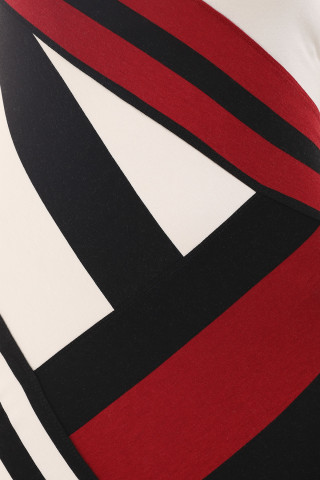 Uska midi haljina u teget-beloj kombinaciji sa kontrastnim linijama, prednjim i zadnjim...