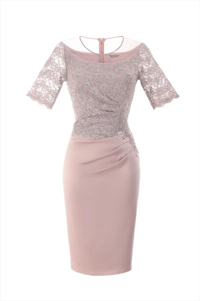 Uska haljina koja ističe zenstvenost. Gornji deo haljine krasi mekana čipka sa čvetnim detaljima. Falte u zoni stomaka doprinose da zavodljivo stoje svakoj figuru tela. Kombinujte je sa sakoom iz iste linije i kreirate ideal kostim koji ćete rado nositi sezonama.