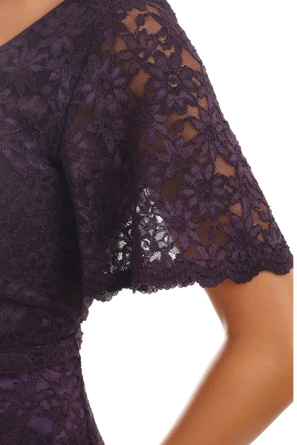 Romantični model haljine od čipke za posebne prilike. Ovaj model zahvaljujući kroju ističe ženstvenost, a struk je dodatno akcentovan kaišem koji se može skinuti. U kombinaciji sa pismo torbom i mantilom kreirajte pravi outfit za odlazak na jesenju svadbu.