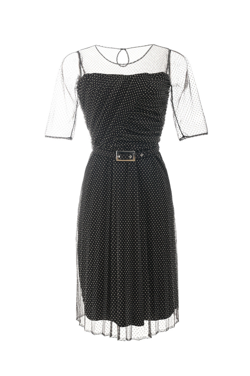 Elegantna crna haljina sa suptilnim sjajem i ženstvenom siluetom za svečane prilike.