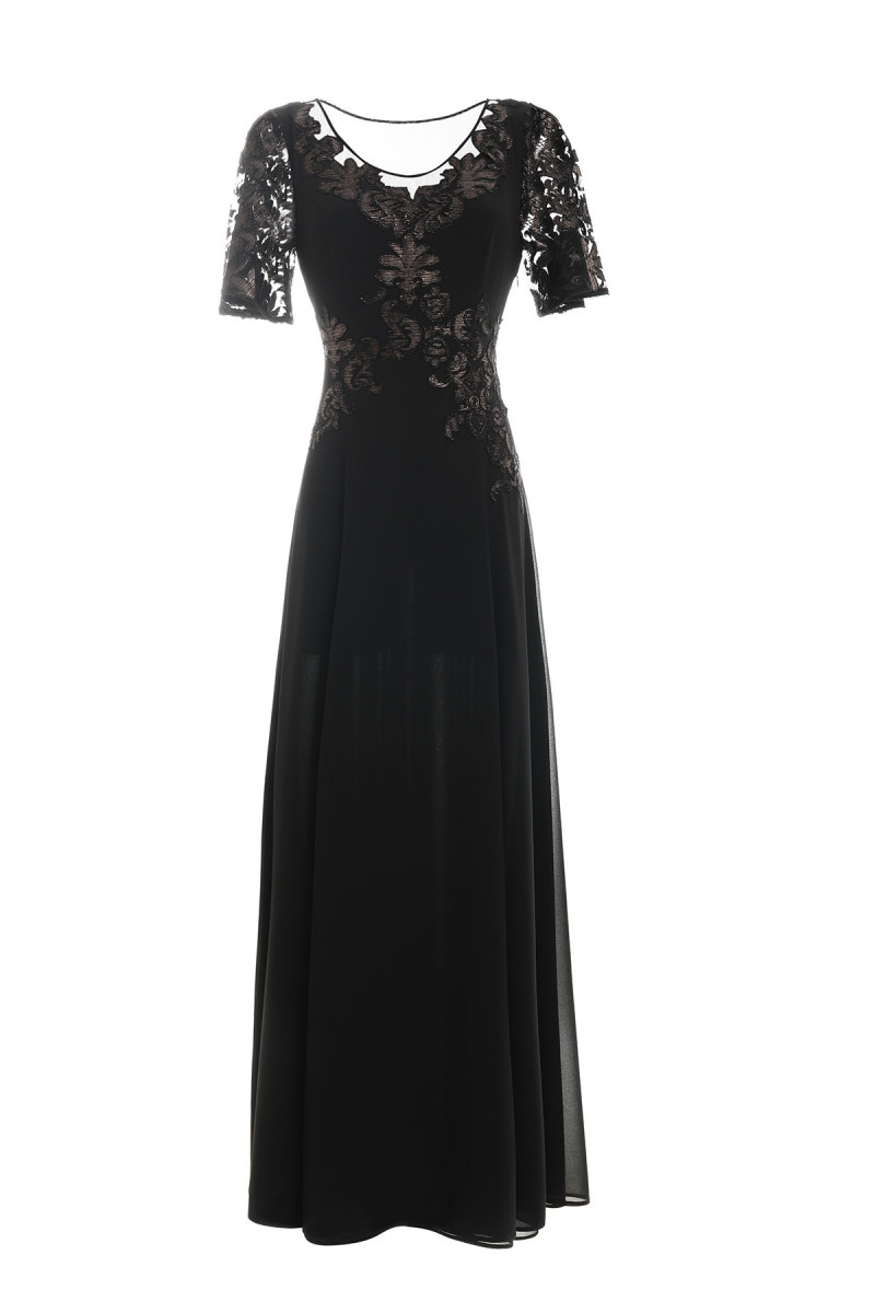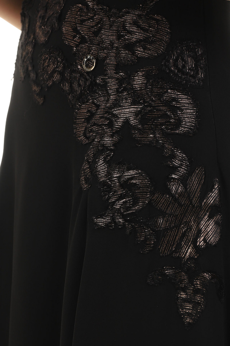 Crna uska haljina sa spuštenim ramenima, naborima i nežnim cirkonima u središtu dekolte...