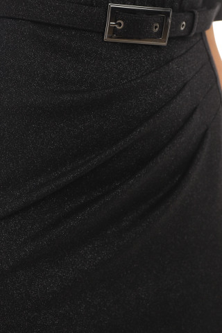 Uska elegantna haljina sa 3/4 rukavima. Predeo grudi oplemenjen je autentičnim štofom i cirkonima. Kaiš će istaći Vaš struk, a možete ga po potrebi i skinuti. Ovaj model je skrojen tako da odgovara svim tipovima građe i savršeno će Vam pristajati - sa njim nema greške. Idealan je za kombinovanje sa sakoom ili kardiganom iz iste linije za postizanje još autentičnijeg look-a.