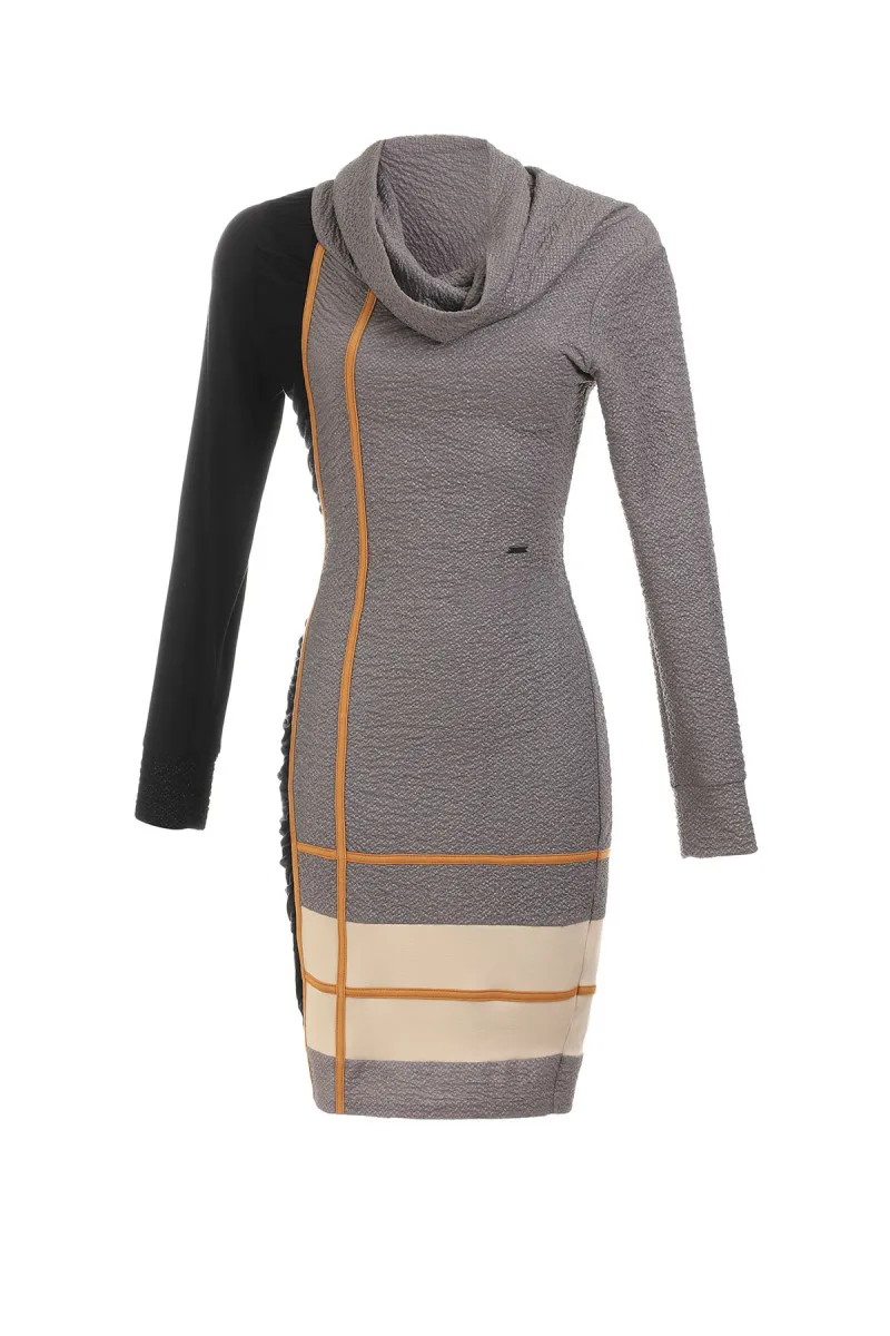 Uska midi haljina u teget-beloj kombinaciji sa kontrastnim linijama, prednjim i zadnjim...