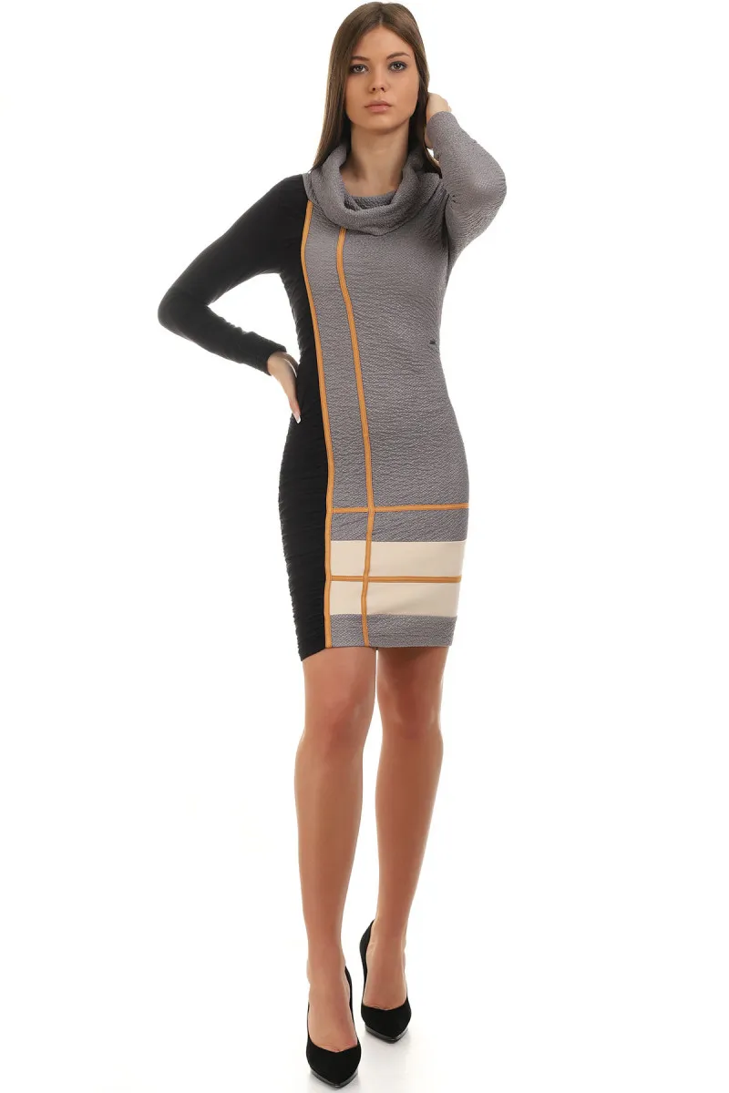 Teget-bela kratka uska haljina sa kontrastnim ivicama, skrivenim rajsferšlusom na leđim...