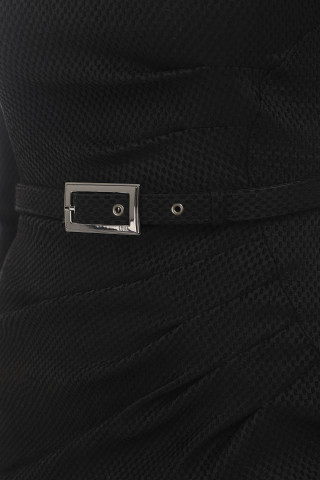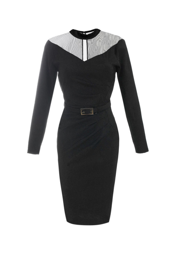 Mala crna haljina je "vrsta uniforme svih žena sa ukusom". Transparentna traka ispod vrata doprinosi efektnosti ovog modela. Kaiš je detalj koji će na savršen načnin istaći Vašu figuru. Elastin u materijalu čini je prilagodljivom različitim građama. U zavisnosti od načina kombinovanja, možete je nositi u različitim prilikama.