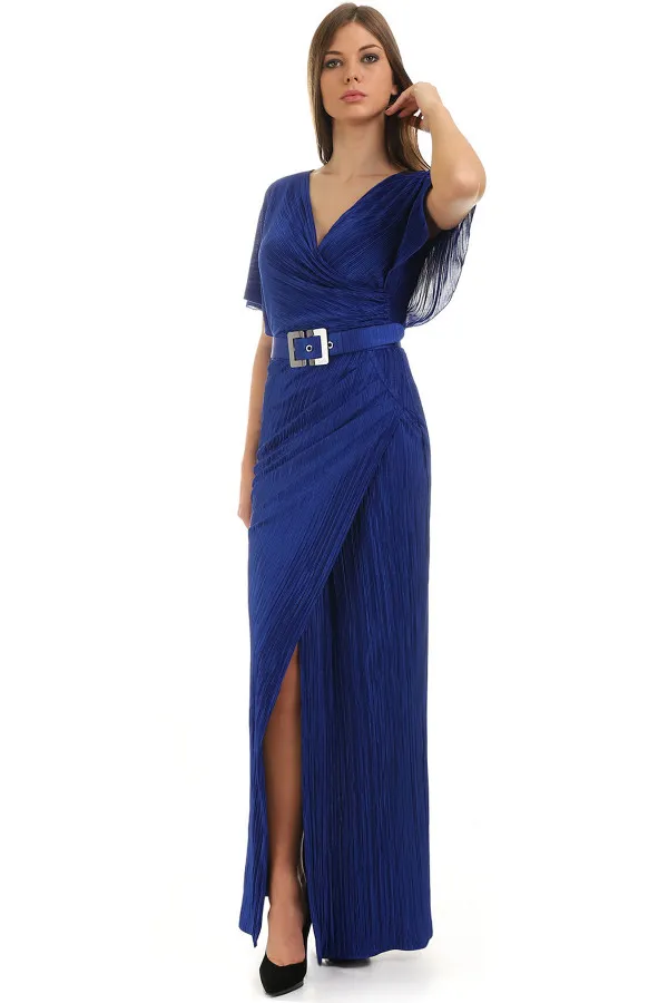 Duga raskošna haljina u kojoj ćete ostaviti utisak u svakoj prilici. Prati siluetu tela i izdužuje figuru a kaiš koji dodatno ističe struk po potrebi možete skinuti Zahvaljujući šlicevima moći ćete nesmetano da se krećete. Izaberite ovu haljinu i osećajte se poput dive sa crvenog tepiha.
