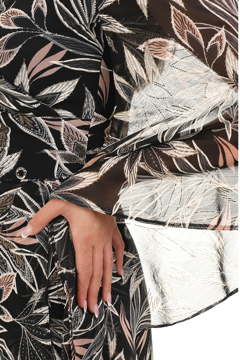 Crna svečana midi haljina sa V-izrezom, funkcionalnim dugmadima, odvojivim kaišem i lep...