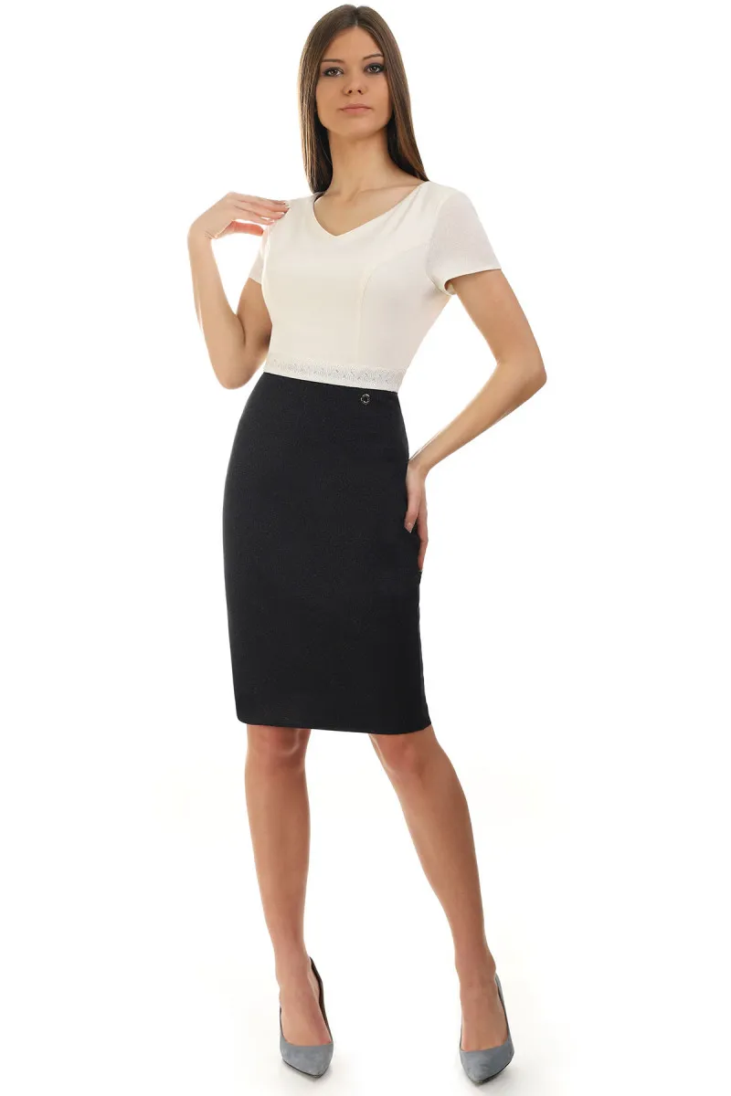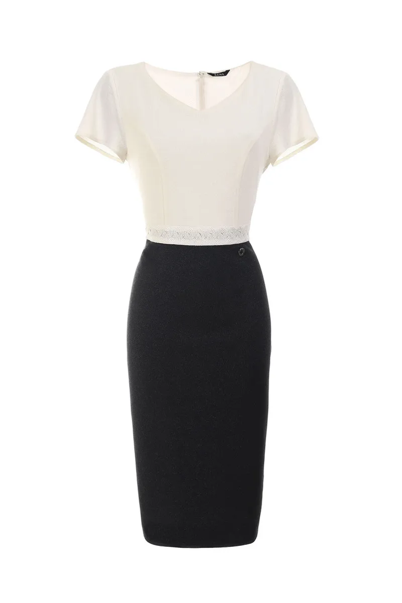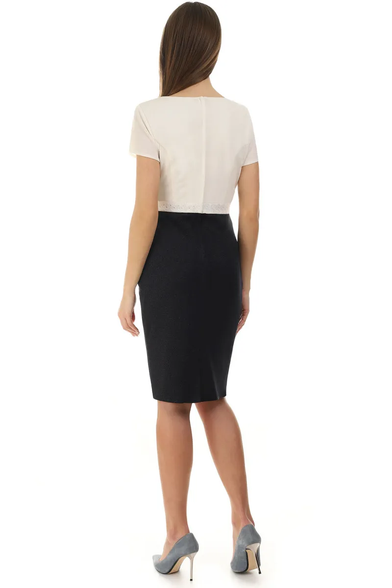 Teget-bela kratka uska haljina sa kontrastnim ivicama, skrivenim rajsferšlusom na leđim...
