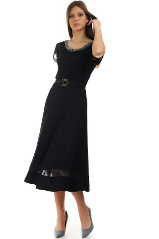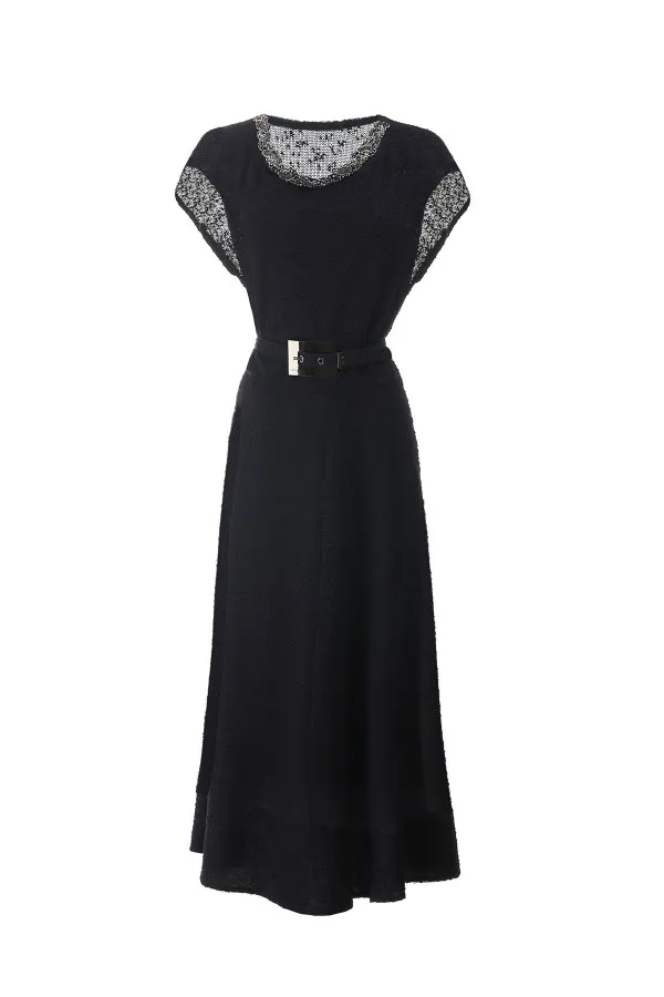 Duga haljina u mornarsko plavoj nijansi idealna je za letnje outfite. Skrojena je od laganog materijala, a elastin je čini vrlo udobnom tokom nošenja. Kaiš ističe Vaš sturk, a po potrebi ga možete skinuti. Iskombinujte ga sa kardiganom iz iste linije za savršeni outfit.