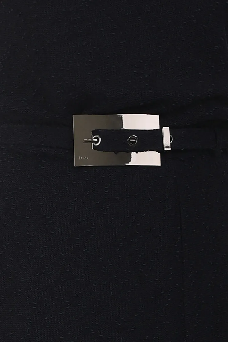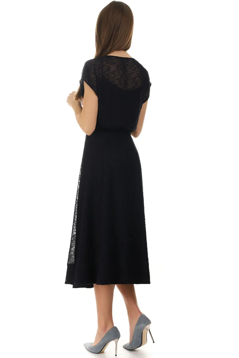 Uska midi haljina u teget-beloj kombinaciji sa kontrastnim linijama, prednjim i zadnjim...