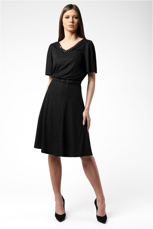Lepršava crna haljina sa kaišem je idealan spoj udobnosti i elegancije, idealna je za Vaše svečane trenutke.