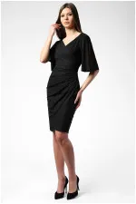 Elegantna, usko krojena haljina u crnoj nijansi sa V-izrezom, odvojivim lepršavim rukav...