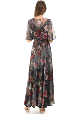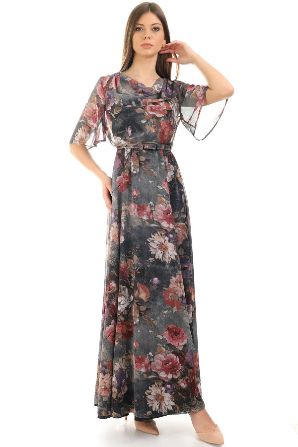 Lepršava duga haljina sa providnim rukavima. Viskozna postava, kao i širi kroj čine je veoma komfornom. Idealna je za vrele letnje dane. Kaiš, koji po potrebi možete skidati, ističe Vaš struk i pojačava notu ženstvenosti. Odaberite adekvatnu torbicu i obuću koja će pratiti dezen i kreiraćete savršen outfit za izlaske na kafu sa prijateljima.