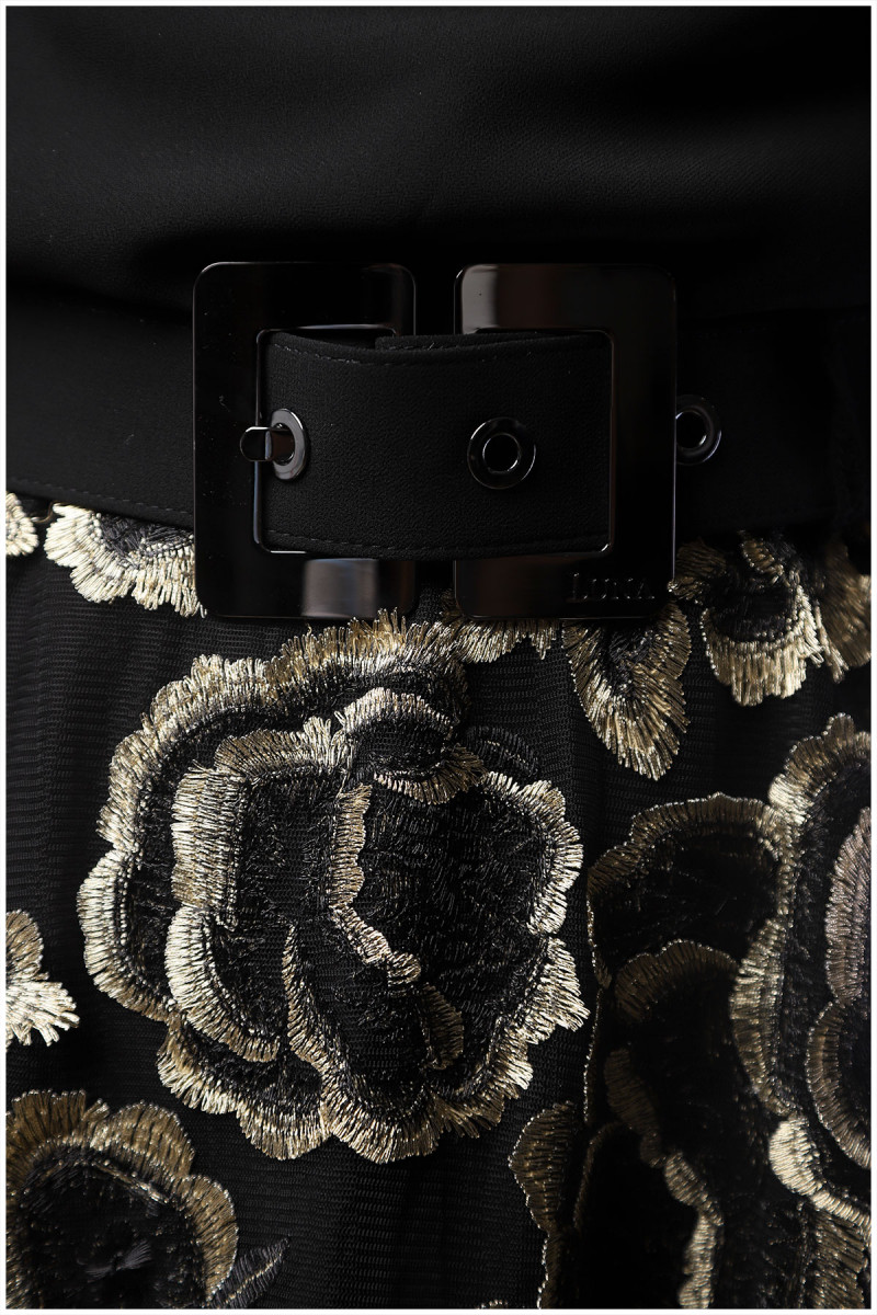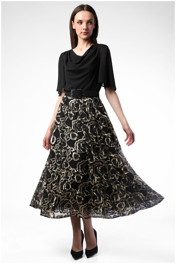 Ženstvena midi haljina. Transparentni 3/4 rukavi, kao i autentičan dizajn donjeg dela haljine doprinose elegantnom izgledu ovog modela. Nabori na predelu dekoltea i širi kroj čine je pogodnom za sve tipove građe. Dodajte nakit i torbicu kako biste upotpunili svoj svečani outfit.