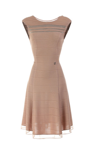 Kratka lepršava haljina u neutralnoj puder nijansi idealan je izbor za svečane prilike.