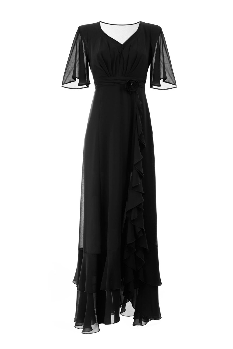 Duga elegantna crna haljina sa karnerima idealno je rešenje kada se pripremate za svečane prilike.