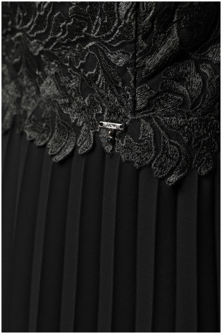 Crna uska haljina sa spuštenim ramenima, naborima i nežnim cirkonima u središtu dekolte...