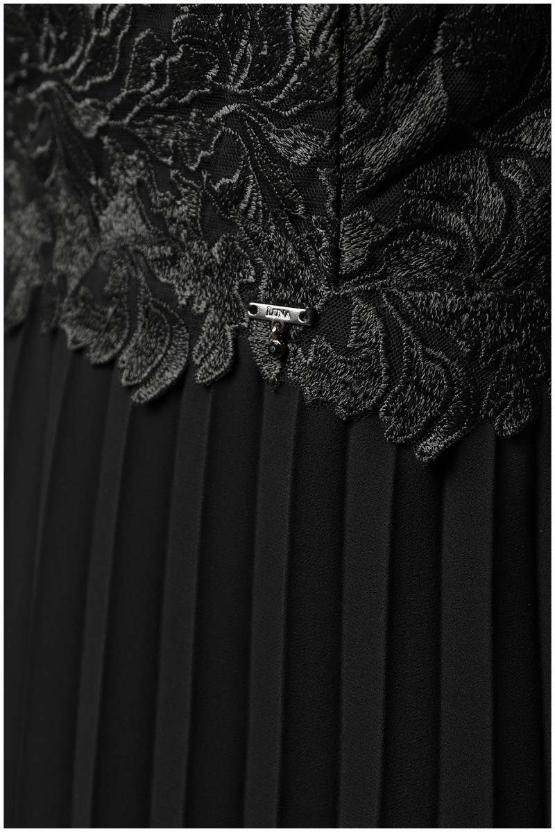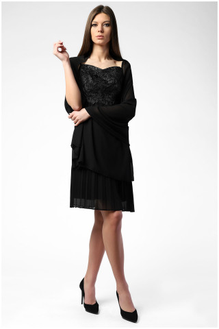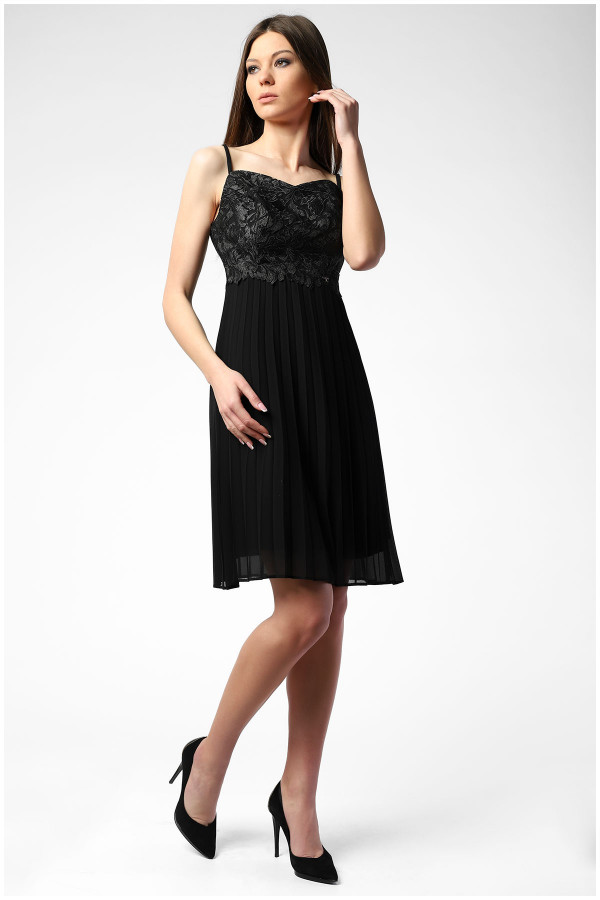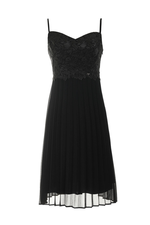 Plisirana kratka haljina. Gornji deo modela oplemenjen je čipkastim detaljima floralnog dezena koji unosi dozu ženstvenosti. Kako biste postigli savršeno stilizovan outfit, iskombinujte je sa Luna torbom i ešarpom.