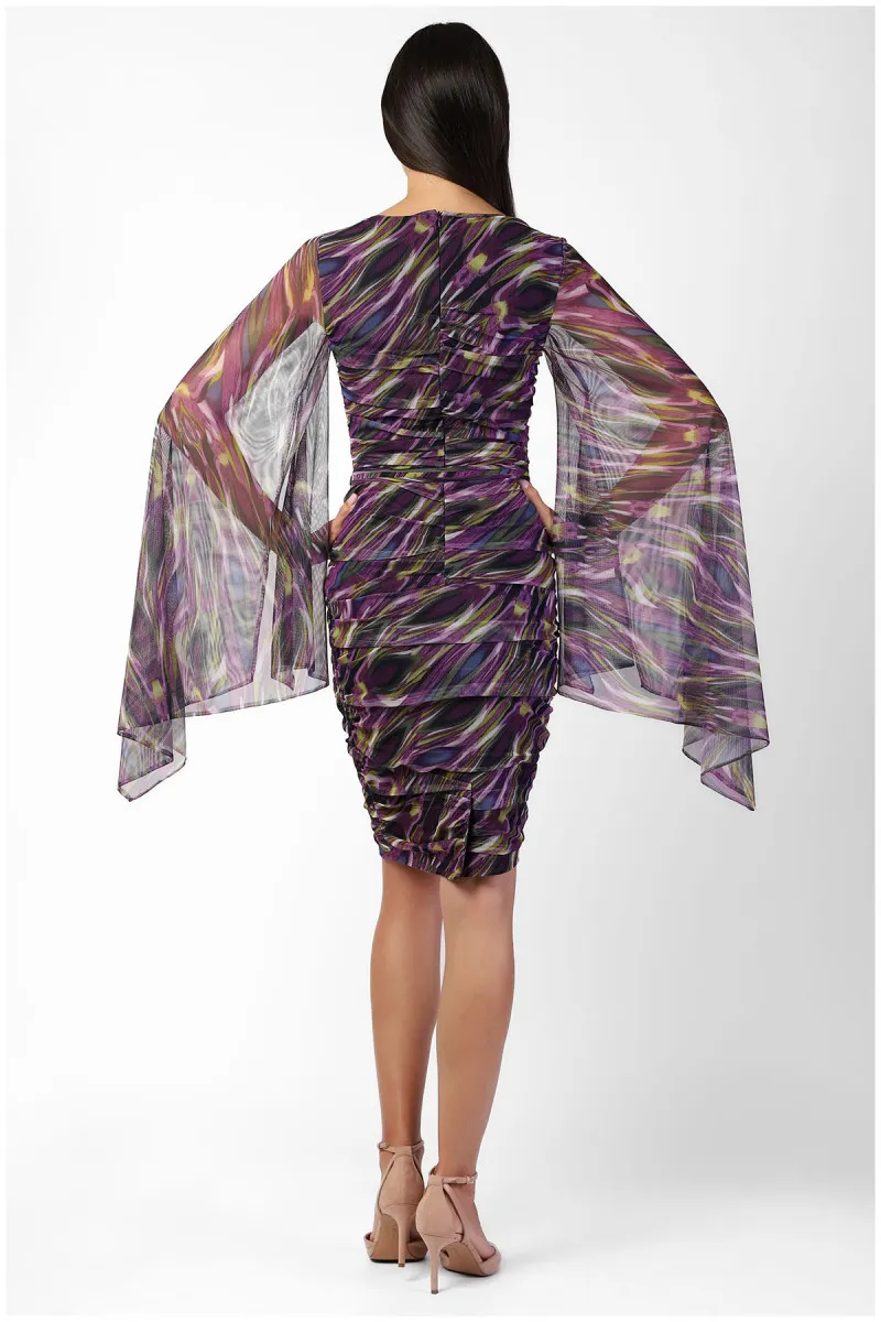Elegantna, usko krojena haljina u ciklama nijansi sa V-izrezom, odvojivim lepršavim ruk...