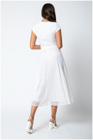 Duga čipkasta haljina kratkih rukava idealna je za tople letnje dane.